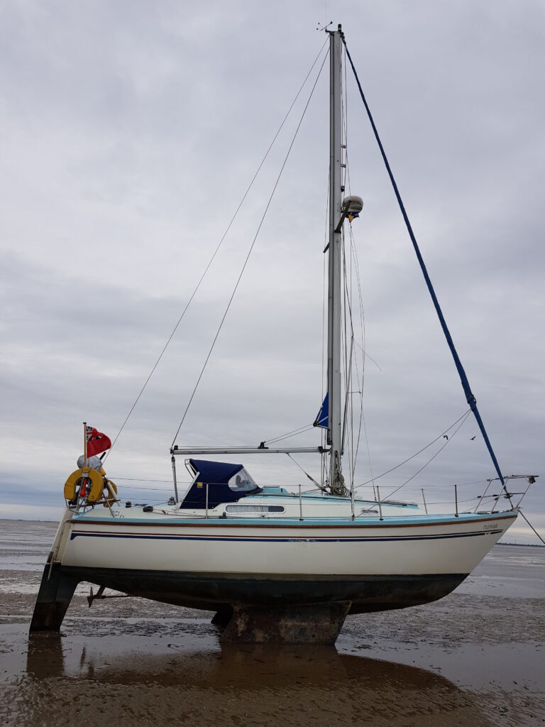 Now here’s where it starts to go pear-shaped. Our tiller pilot (that Shelagh had previously named SIMON) can take individual waypoint instructions from the chart plotter, by putting it in auto mode and hitting Simons ‘nav’ button. This way it will take you to the next waypoint. So, having hand steered down river I decided in my infinite wisdom that it was time to let Simon take over. Yeh, great idea, only when you do so, make sure the chart plotter is actually heading for the same waypoint you are. And which muppet forgot to check this, you got it. ME! Just under an hour later, we’re having a whale of a time, trogging along when there’s a slight bump, “what the f*** was that” feels like the bottom, jumps up checks the chart plotter and sure enough we’ve been heading across the Buxey Sands towards Swin Spitway. And now its too late to do anything about it. Annoyingly, had we been 100 Metres further on, we’d probably have made it off. You guessed it, we’d crossed the Buxey on a falling tide. At this point I was extremely glad that I’d bought a Bilge Keel boat, so I made a quick phone call to Dover Coastguard to inform them of our situation. They insisted on setting up an hourly radio check in, which we happily went along with. Once the last of the water had gone from under us, Shelagh set about making dinner and I set about dragging the anchor out and giving the bottom a lookover and scrape. I think Pleinair will be coming out this winter, there’s not a lot of antifoul left on there. Well, we sat there for best part of six hours waiting for the return of the wet stuff to refloat us which it duly did. While we were sat there pondering we decided that it would be better for us to alter our route and head into Bradwell riverside, so the chart plotter was reset to a new route and at the relevant time, we set off again.
