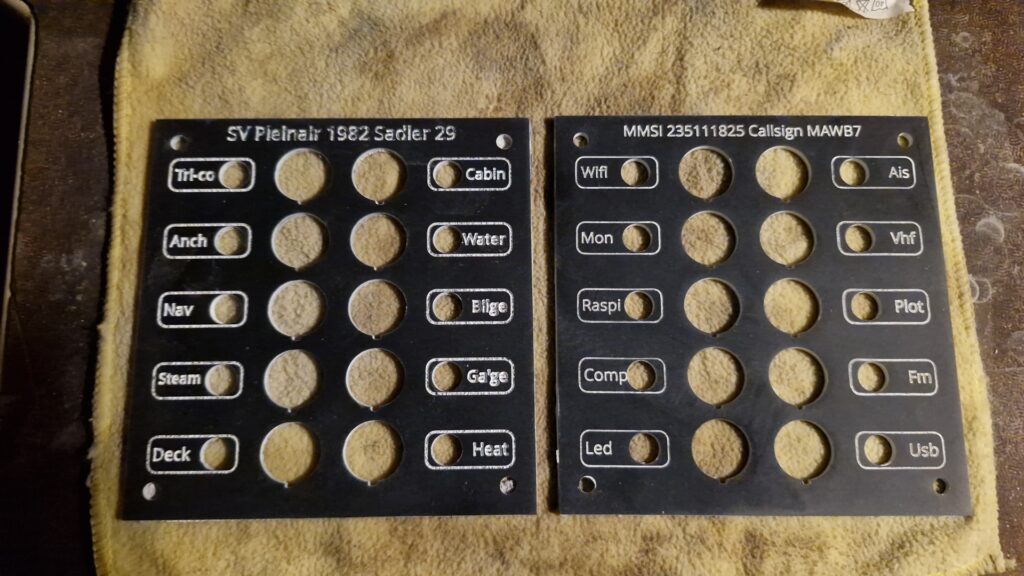 I’m also fortunate enough to be able to power my baby CNC machine from the boat and as a result of using yet more open-source software, I have designed and cut 2 new switch panels, one of which is already installed alongside the chart table. At some point I’ll write full articles covering these projects, in their own right. Meanwhile, back to doing useful things.